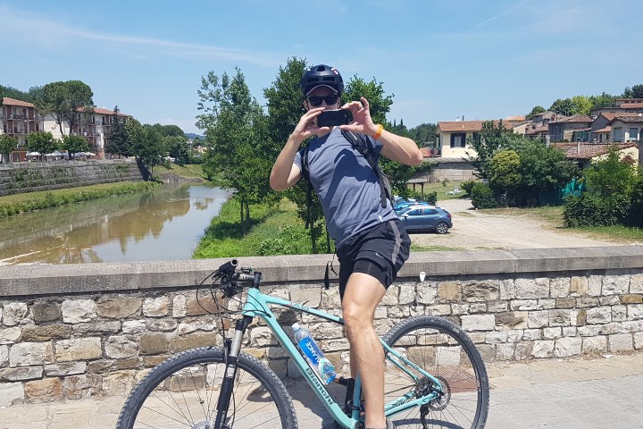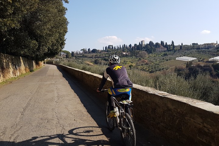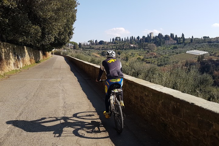 We’ll start by bike, riding along the Arno river, crossing the city centre on a cycle path, passing on Ponte Vecchio and by the Pitti Palace, to get out of the city.